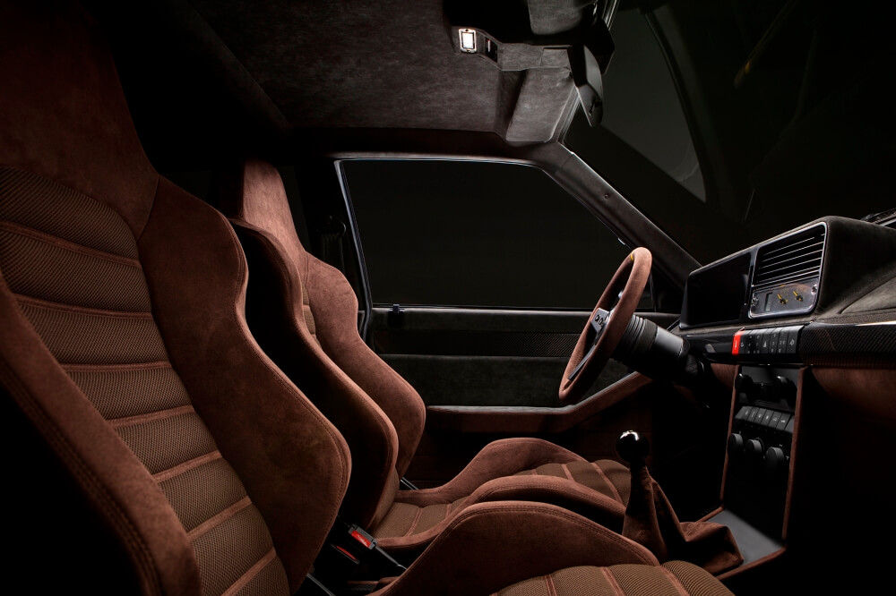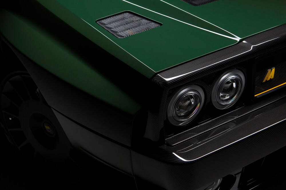 Una de las modificaciones más importantes tiene lugar en la carrocería de estos clásicos rescatados. Automobili Amos eliminó las puertas traseras y convirtió el Delta Futuriasta en un hatchback de tres puertas. Gracias al uso de materiales ligeros y la construcción liviana, el Futurista pesa tan solo 1.250 kilos. Tampoco se descuidó el interior, donde encontramos una cabina tapizada en Alcantara con asientos delanteros Recaro, pedales de aluminio, fibra de carbono en el túnel de transmisión y un volante modificado.