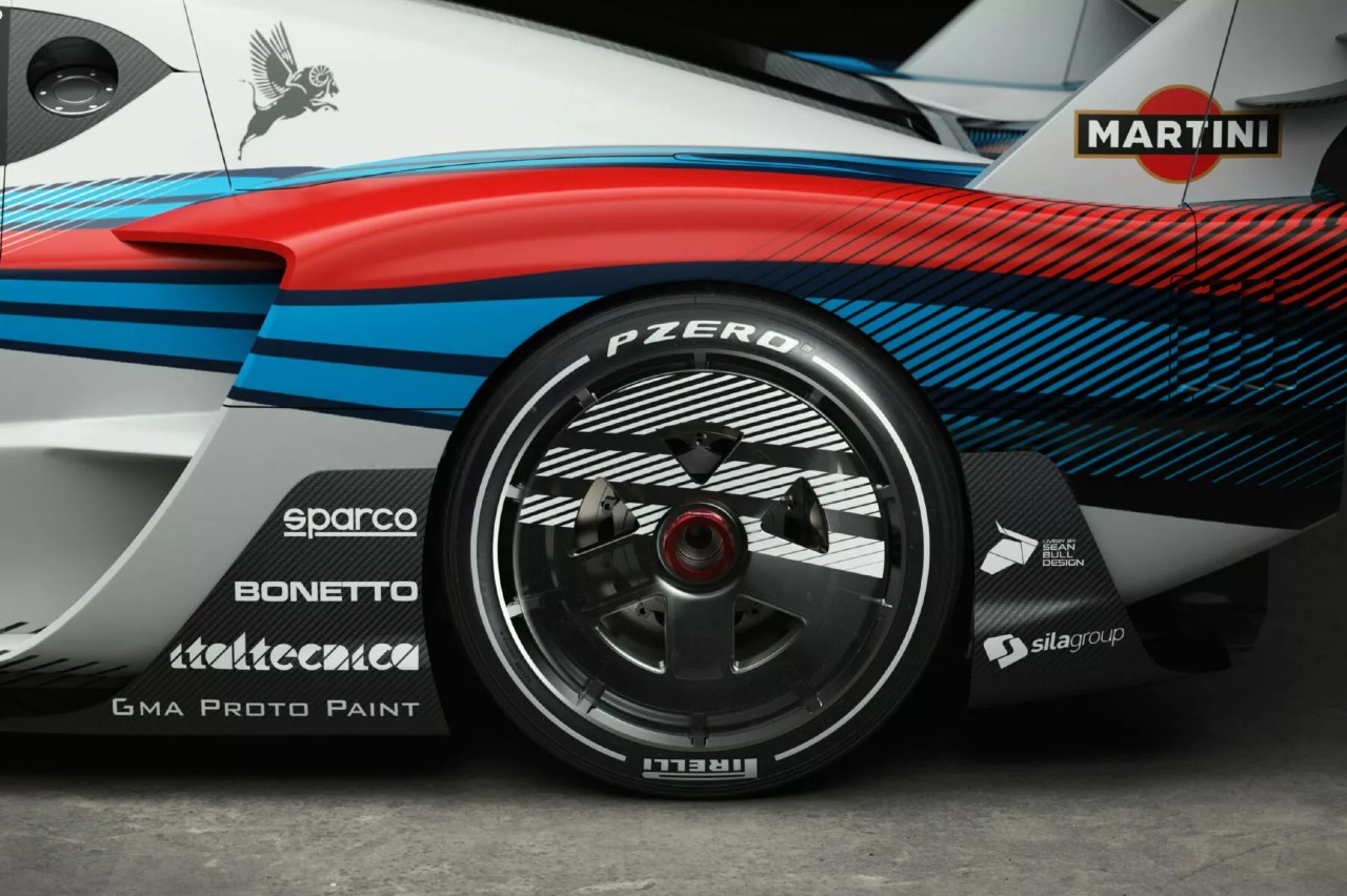 El paragolpes delantero es mucho más voluminoso, se extiende hacia adelante y va prácticamente pegado al suelo, las llantas están prácticamente carenadas para mejorar la aerodinámica, los faldones cuentan con extensiones en las secciones cercanas a las ruedas y la zaga es la parte más espectacular gracias a las salidas de aire, al descomunal alerón, al agresivo difusor y a las tres salidas de escape montadas en posición central.