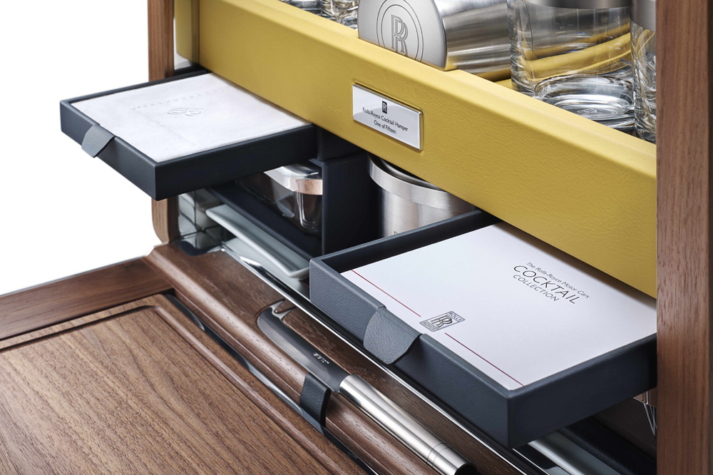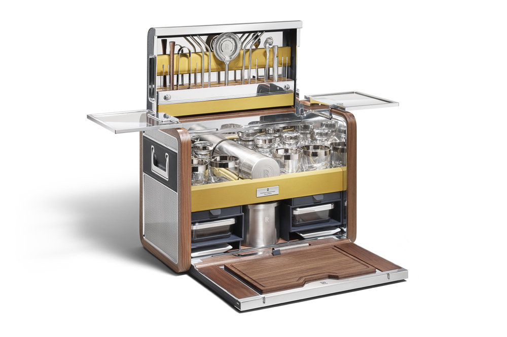 Y como muestra, nada mejor que echar un vistazo a uno de los últimos complementos que han puesto a la venta: el kit para cócteles de Rolls-Royce. Fabricarán un total de 15 unidades de este pequeño armario que incluye todo lo necesarios para preparar todo tipo de cócteles, un objeto que según la marca, ha sido diseñado para aquellos que quieran “disfrutar de algo más que la tradicional copa de champán”.