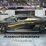 Es difícil llamar la atención en una feria del automóvil cuando tienes por vecinos al Ferrari LaFerrari, McLaren P1 y Lamborghini Veneno. A pesar de ello, el Koenigsegg Agera S Hundra se ha lucido como pocos superdeportivos saben hacerlo. La culpa la tiene su ‘piel’ realizada en fibra de carbono y decorada con incrustaciones de oro de 24 quilates.