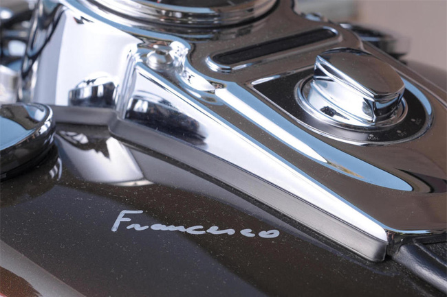 Esta Harley tan especial lleva en el depósito la firma del Papa Francisco. Además, se ha subastado con un certificado de conformidad de Harley-Davidson.