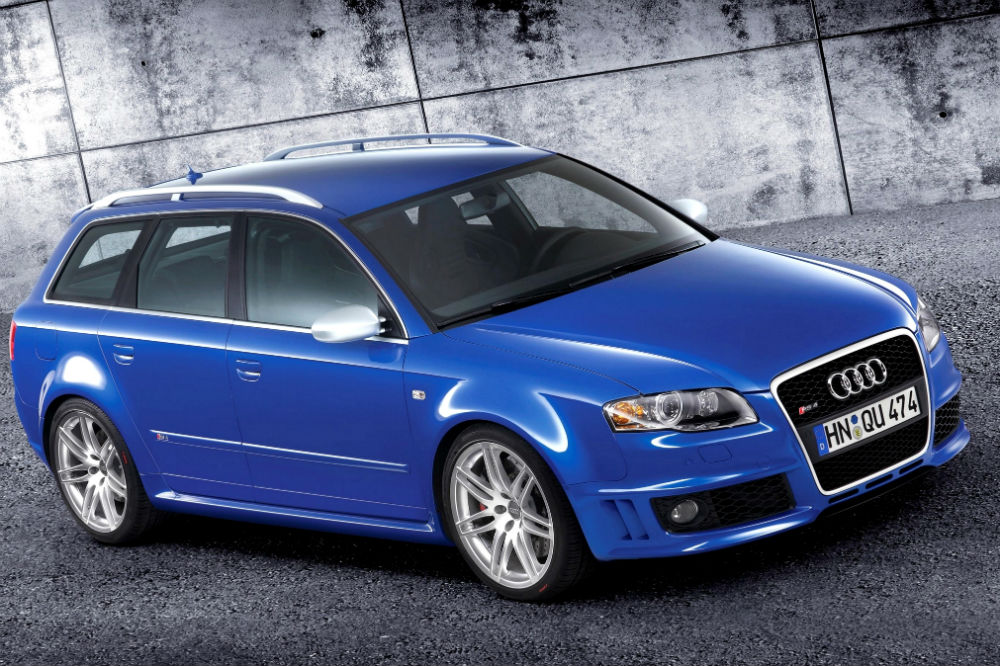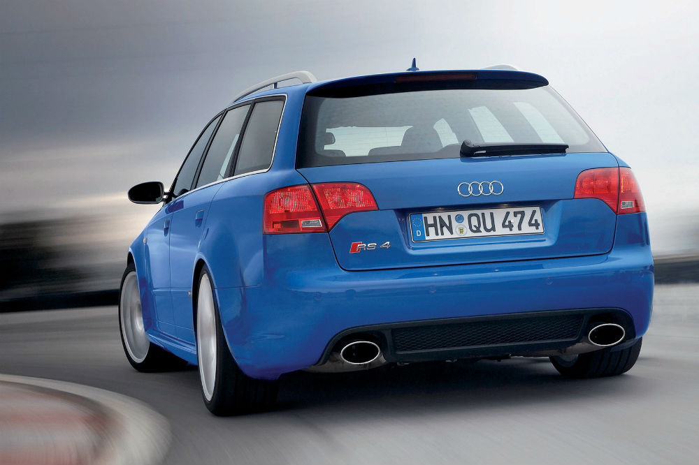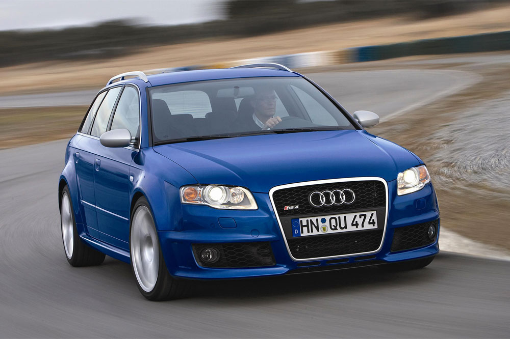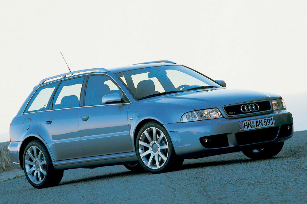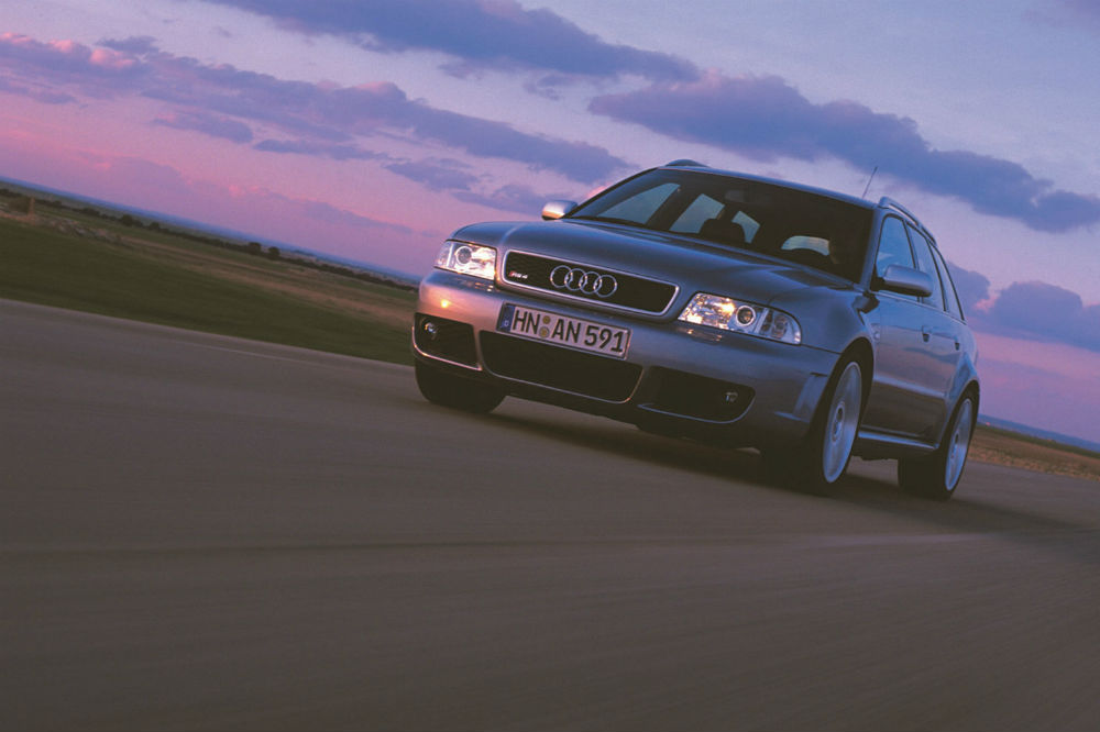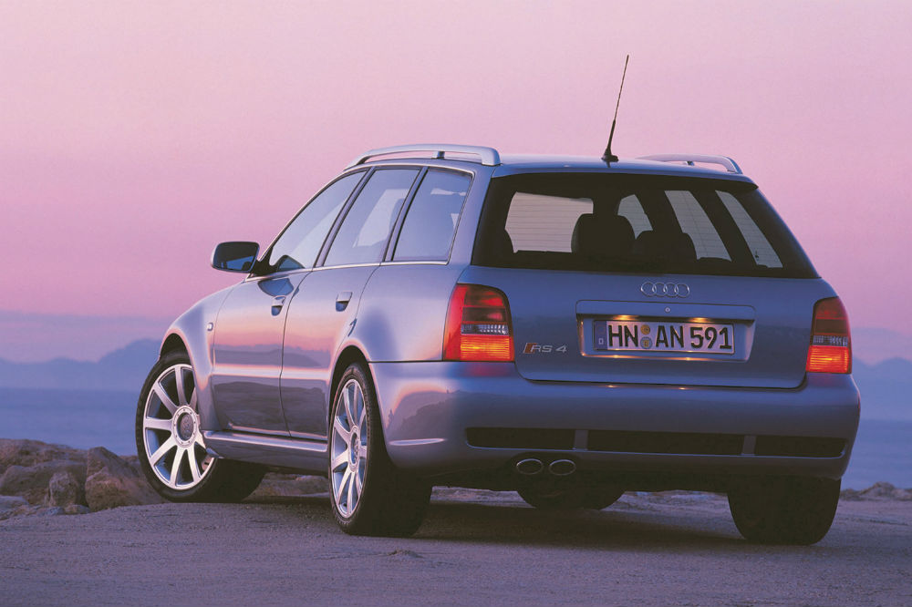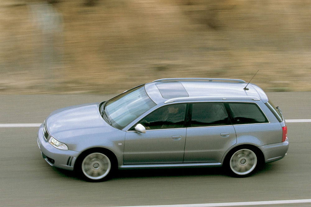 El comienzo de la estirpe RS 4 Avant como tal tuvo lugar en el año 2000, cuando Porsche quedó fuera de la ecuación, lo que propició que Audi creara su propia división deportiva. La radical versión se basaba en el S4, respecto al que recibía un kit de carrocería específico, un ensanchamiento de vías hasta los 1.800 mm y un lote de piezas de aluminio para aligerar peso. También se evolucionó el motor 2.7 biturbo, que con una larga lista de modificaciones pasó de rendir 265 a 380 CV, catapultando al “familiar” de 0 a 100 km/h en 4,9 segundos. Nada mal para ser el primero.