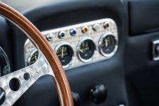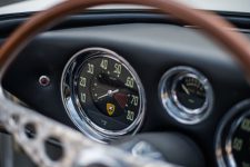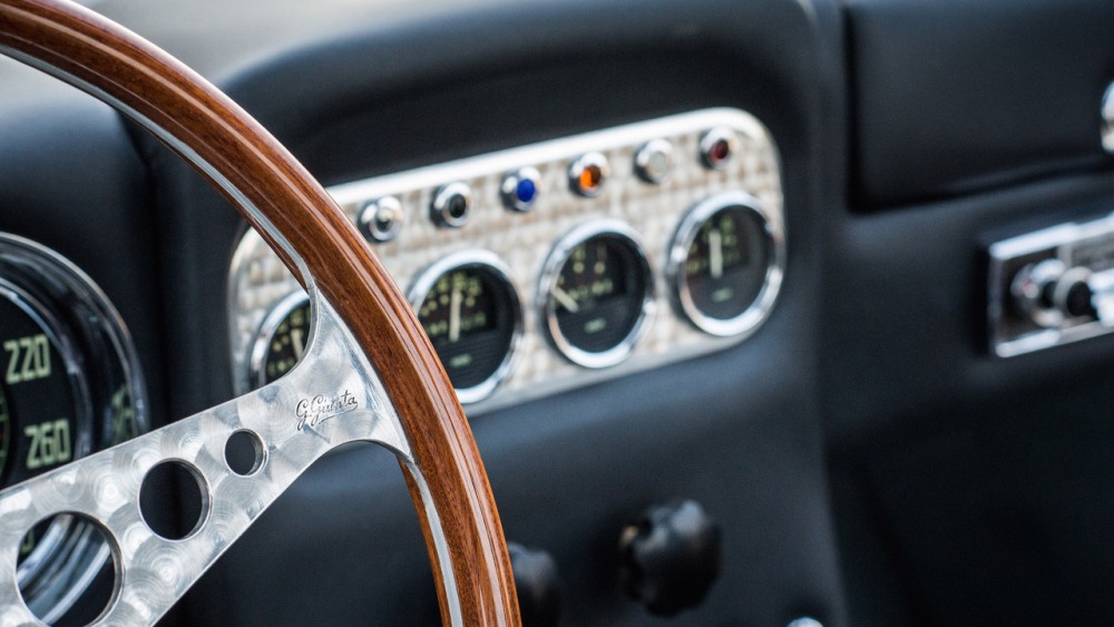 En el interior de este fantástico 350 GT de 1964, el cuero fue remodelado mediante los procedimientos originales de la época. El volante de madera y el acelerador original, el embrague y el pedal del freno también fueron devueltos a su máximo esplendor, manteniendo pequeños signos de desgaste como muestra de la edad del vehículo. Incluso la radio es totalmente funcional.