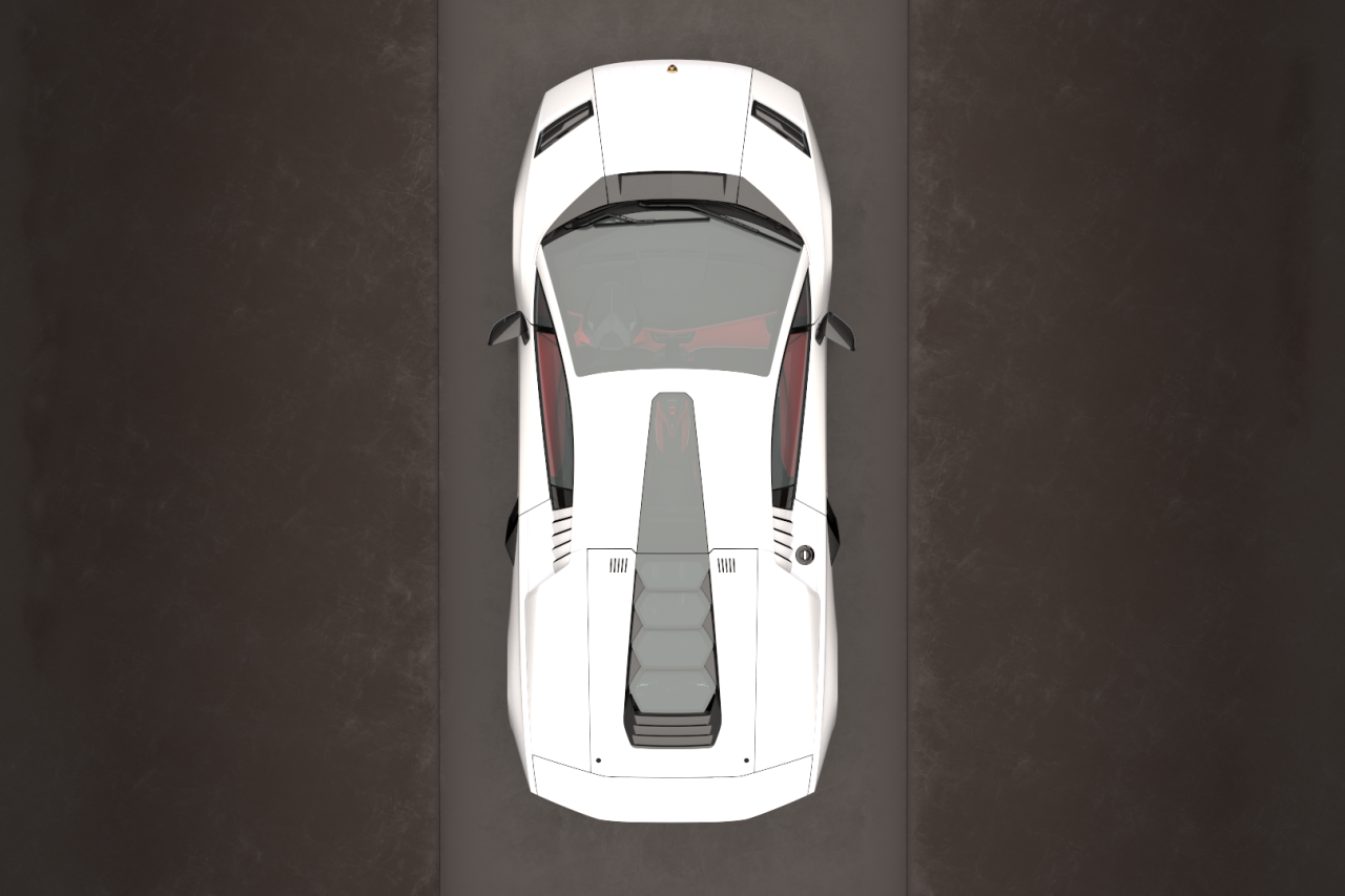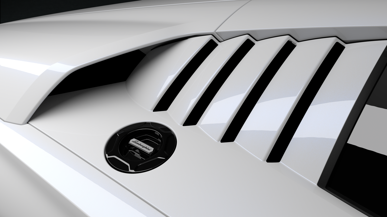 El inclinado parabrisas da paso a un techo con una sección acristalada que se une a la cubierta del motor con lamas divididas. El lateral muestra algunos rasgos inspirados en modelos actuales de la compañía, como el Lamborghini Aventador (prueba). Las puertas de tijera tienen una forma afilada, espejos retrovisores sobre ellas y unas grandes tomas de aire que permiten refrigerar el compartimento del motor. Unas tomas de aire secundarias como las que equipa el Aventador o las que lucía el Murciélago (en este caso, eran activas) ayudan a refrigera el motor.