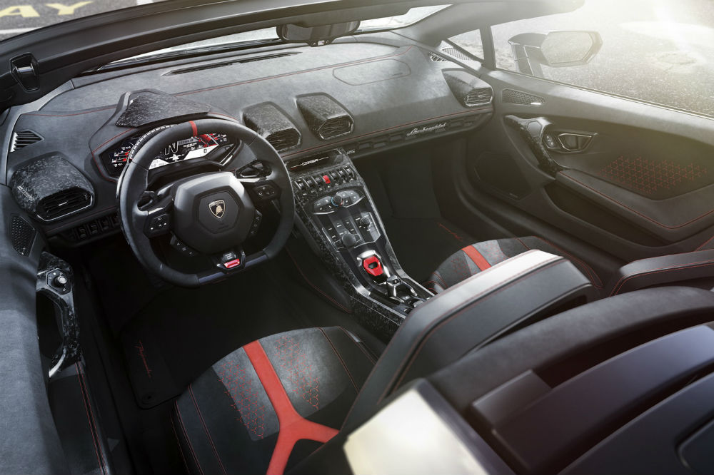 En lo que no difiere del Huracan Performante es en el motor, la marca italiana confía en el propulsor 5.2 V10 atmosférico de 640 CV de potencia y 600 Nm de par. Como suele ocurrir es algo más lento que el cupe, necesitando 3,1 segundos para hacer el 0-100 (dos décimas más), llegando hasta los 200 km/h en 9,3 segundos y marcando como su tope los 325 km/h de velocidad máxima.