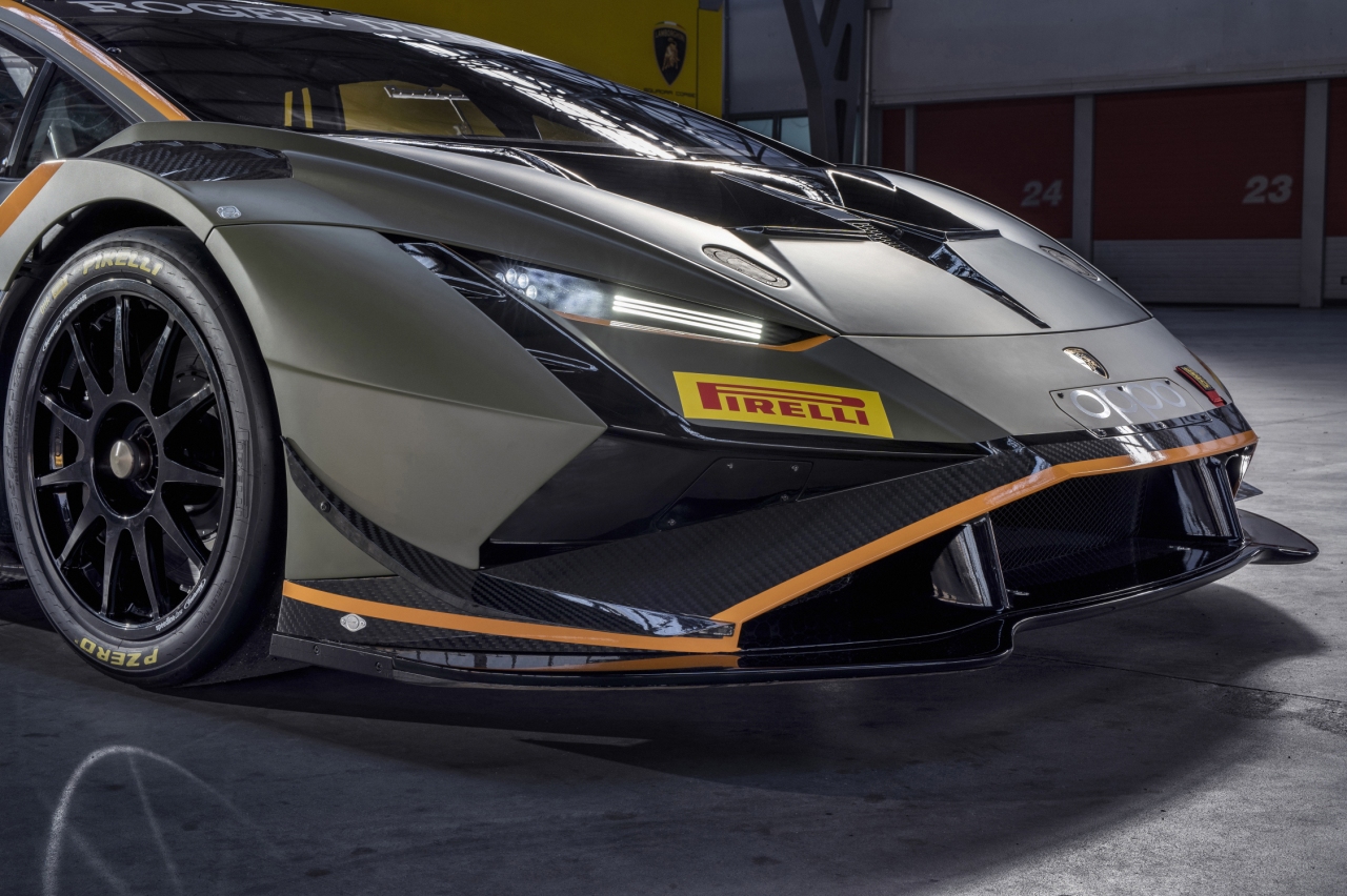 La aerodinámica y el diseño son las áreas en las que el departamento de competición de Lamborghini y el Centro Stile se han centrado principalmente. A nivel estético, el frontal cambia radicalmente, con unos nuevos faros full LED de alta intensidad con un diseño hexagonal y un pronunciado labio “omega” que se une a las aletas de fibra de carbono. También son nuevas las entradas de aire que integra el parachoques.