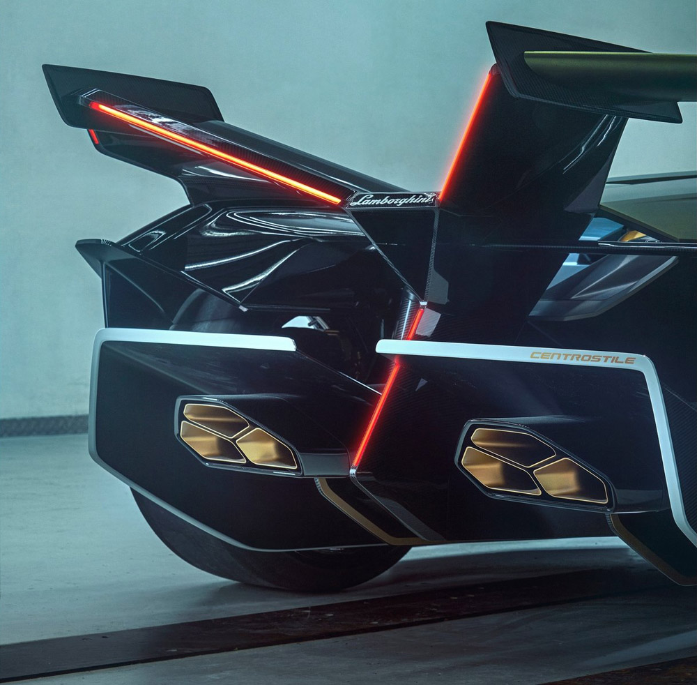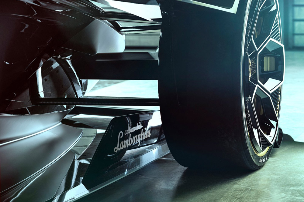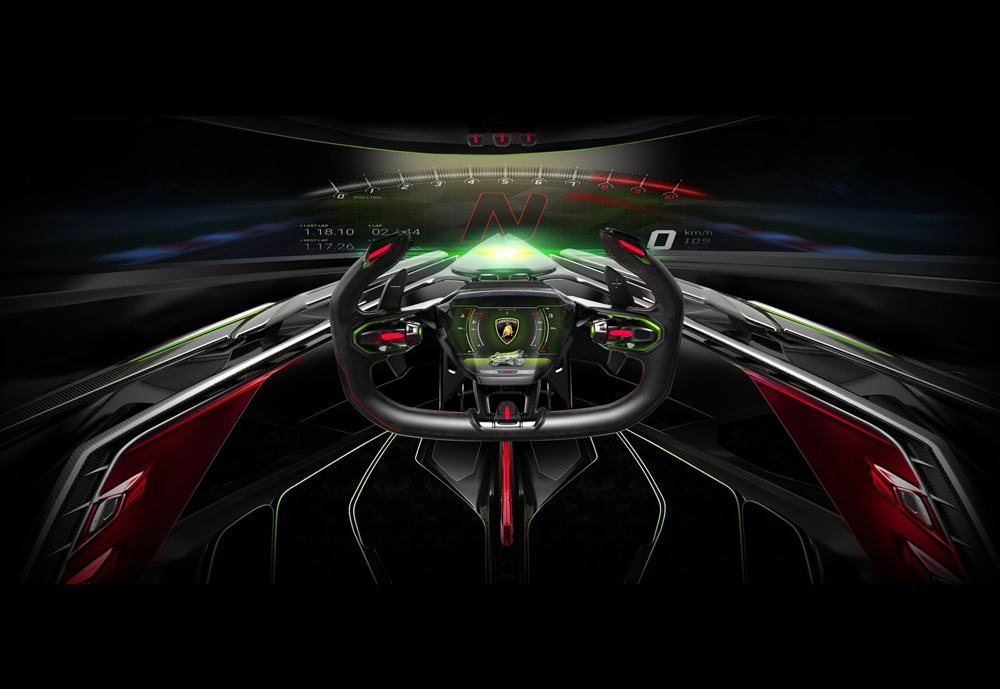 Estéticamente, este modelo virtual combina rasgos de otros Lamborghini con toques futuristas muy agresivos. Destaca especialmente el colosal alerón trasero o la cabina, que está separada físicamente de los guardabarros. En su interior sólo puede viajar el piloto, que controla todas las funciones desde el volante y que accede al habitáculo por delante, como si de un avión de combate se tratara.