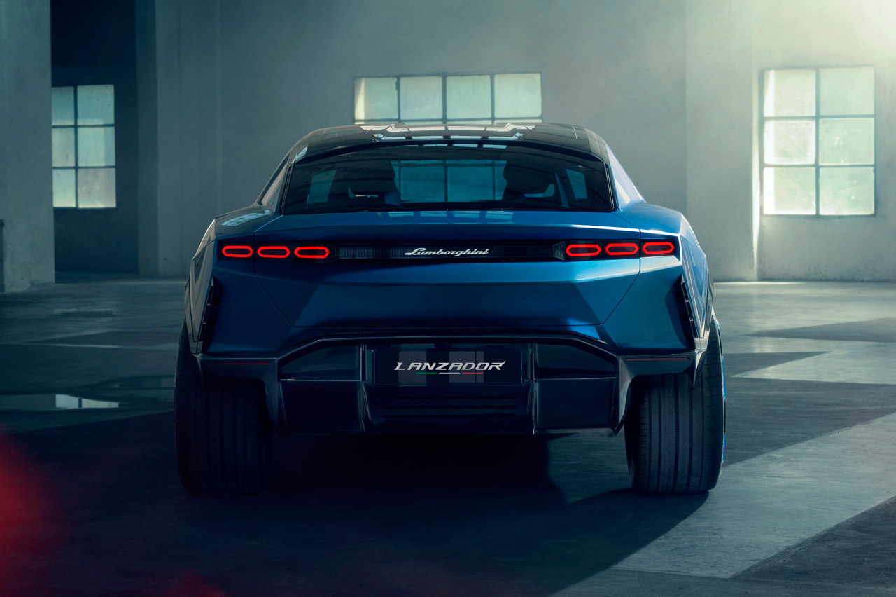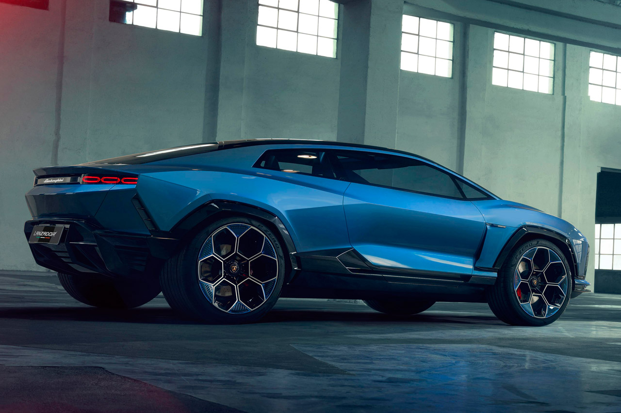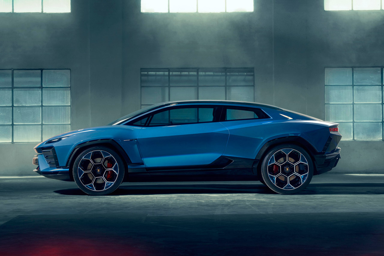 A pesar de que sigue teniendo la superficie afilada de otros Lamborghini, este deportivo eléctrico rompe con la tónica habitual de la marca italiana al ser un modelo con segmento indefinido. Todo su exterior es obra de Mitja Borkert (jefe del Centro Stile Lamborghini), que imita a un caza de combate.