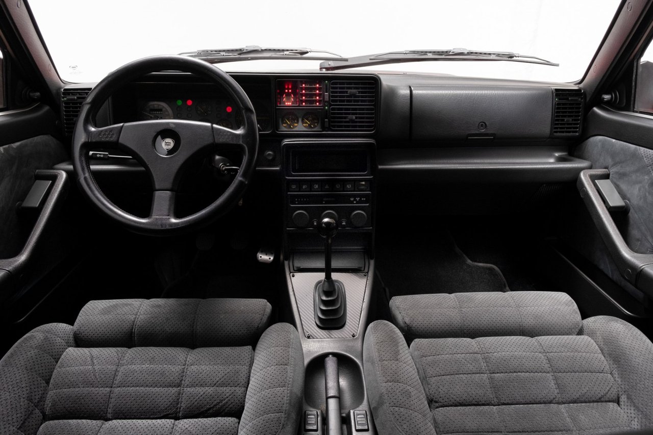 El vehículo está equipado con asientos Recaro y tiene un sistema ABS Bosch estándar de la versión Evoluzione. Cuenta también con un alerón trasero integrado y las famosas insignias HF amarillas de Lancia. El coche fue adquirido en Italia por un coleccionista español que quedó sorprendido al comprobar el buen estado del vehículo.