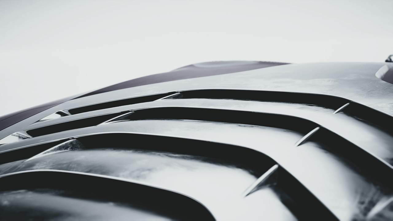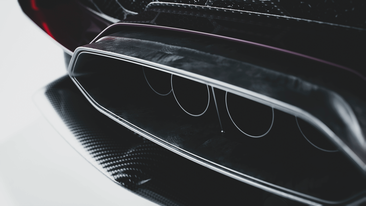 La parte trasera integra una luneta laminada con salidas de ventilación para que el motor pueda evacuar el calor. Lo mismo ocurre con la parrilla trasera, los delgados pilotos de LED y las salidas cuádruples de escape integradas en un marco central. El gran difusor de carbono completa el conjunto desde un ángulo que recuerda poderosamente a algunos modelos de Lamborghini.