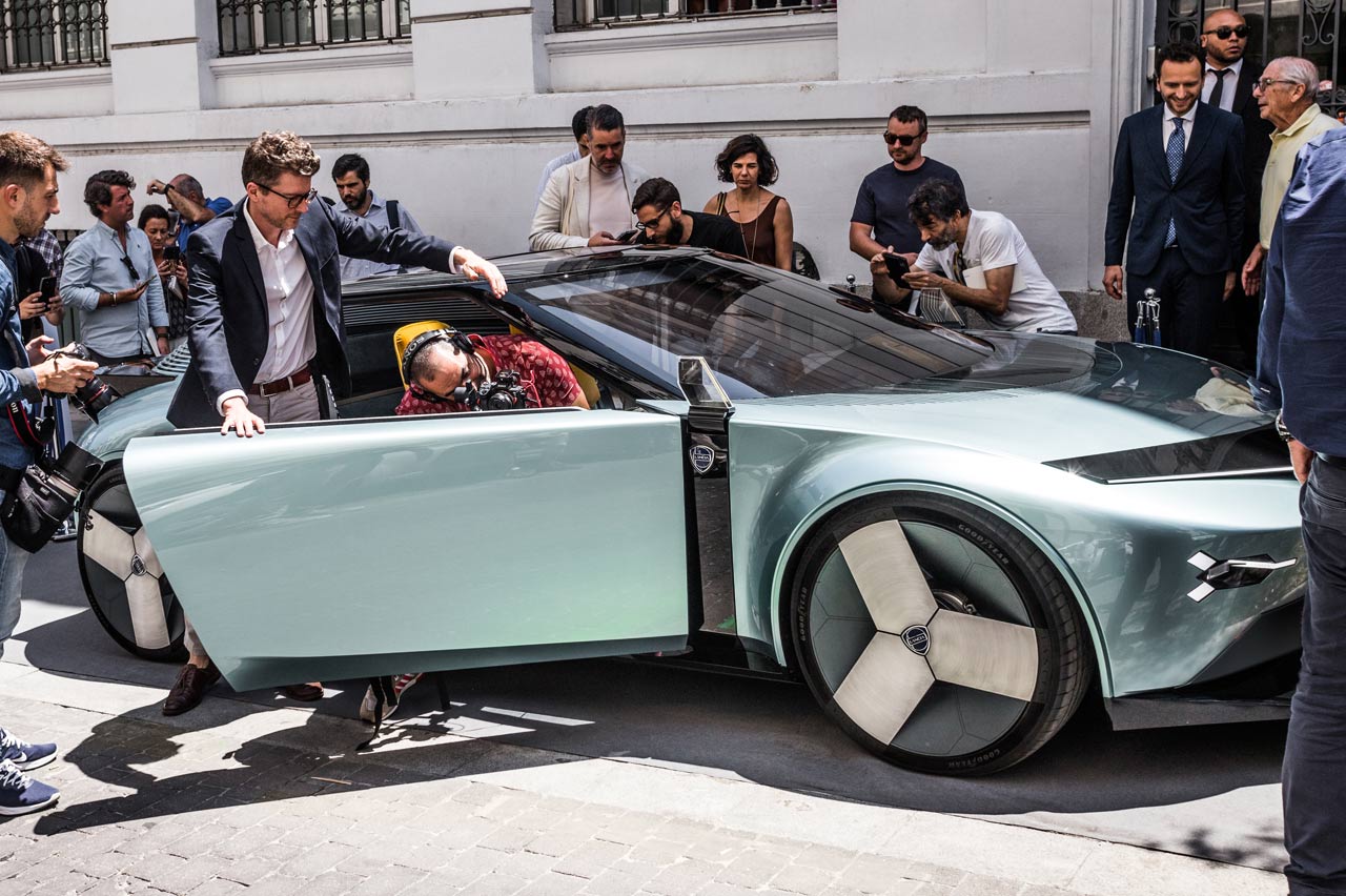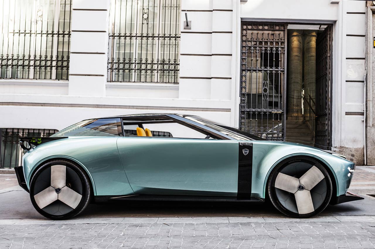 Precisamente el acto ha contado con la presencia de este concept-car, que anticipa algunos de los rasgos de diseño de los vehículos venideros. Para su exterior se ha tomado como base uno de los modelos más importantes de la historia de la compañía, el Stratos, y como este exhibe un techo muy bajo y formas geométricas elementales como el círculo y el triángulo. Asimismo, adopta algunos detalles clásicos, como las persianas venecianas de Lancia Beta HPE.