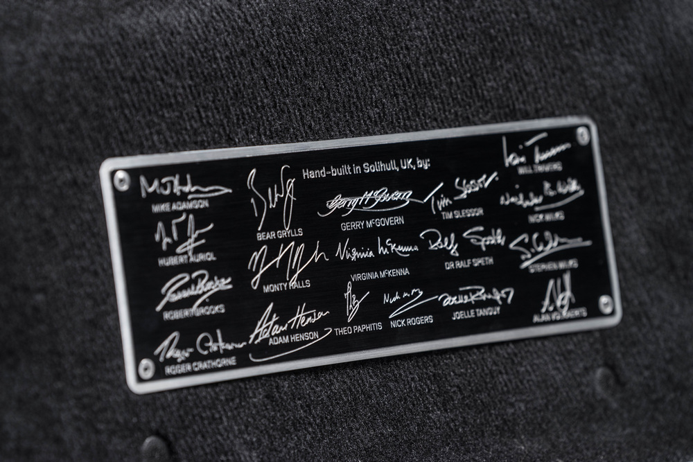 Cada uno de ellos ha contribuido colocando un componente en el vehículo, muchos de los cuales son específicos de esta unidad. Así, el Land Rover Defender dos millones incluye unas aletas delanteras grabadas con un mapa de la playa donde dibujaron sobre la arena el primer boceto de este todoterreno, una pintura exterior satinada única, logotipos específicos en el exterior y en el interior, incluida una pequeña placa con el nombre de todos y cada uno de los que han ayudado a fabricarlo.
