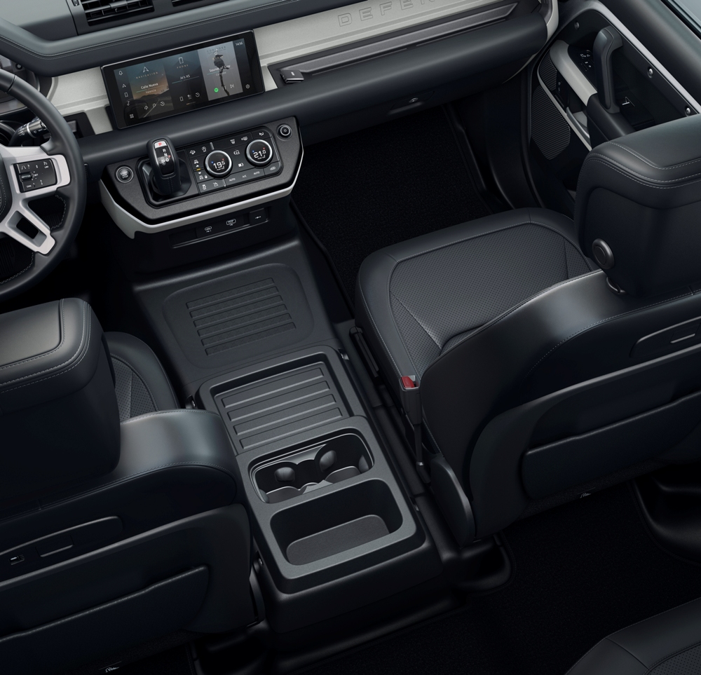 El minimalismo del Defender clásico se materializa también en el interior del nuevo modelo. El Land Rover Defender 2020 presenta superficies limpias con diferentes acabados, una pantalla táctil central de 10 pulgadas, un asiento delantero plegable que permite que viajen seis pasajeros (hasta siete en el Defender 110), y diferentes colores para la tapicería, disponible en varios acabados, incluyendo piel. Por último, el maletero ofrece 1.075 litros en su configuración estándar en la carrocería 110, llegando a los 2.380 litros una vez se abaten los asientos traseros.