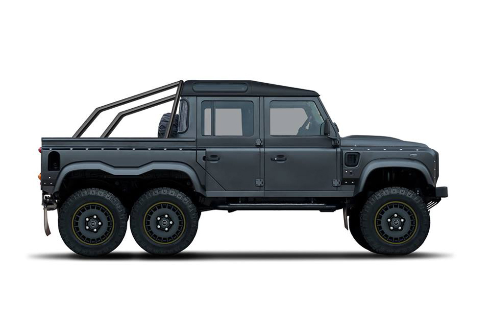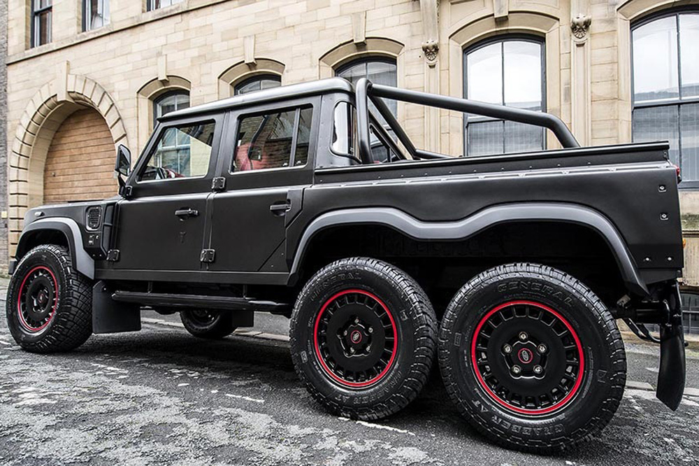 Si hace unos días te contamos que había salido a la venta un Land Rover Defender 6x6 con motor V8 del preparador Kahn Design, ahora esta firma británica presenta un nuevo modelo que comparte características con este último, aunque en este caso se trata de un Land Rover Defender pick-up 6x6. Este todoterreno de estética brutal y capacidades offroad extraordinarias está desarrollado sobre la base del Land Rover Defender 110 pick-up de doble cabina, que para la ocasión, cuenta con un chasis y una caja de carga alargada para poder acoger el tercer eje rígido que monta.