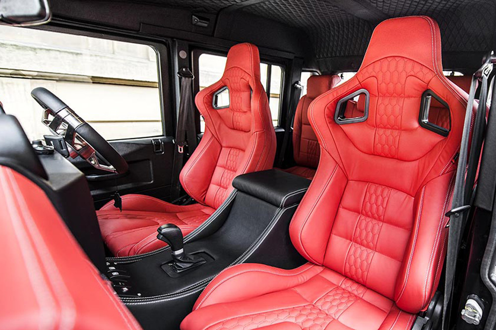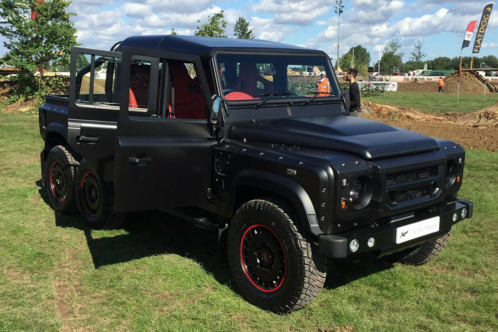 Personalmente, el Kahn Design Flying Huntsman 110 6x6 Crew Cab Pick-up (ese es su nombre completo) me parece bastante más logrado estéticamente que el Defender 6x6 que presentaron en Ginebra en marzo y que se alzó como uno de los concept más destacados del Salón de Ginebra 2015. Y es que, a diferencia de este último, el nuevo modelo no tiene el un eje delantero adelantado 40 centímetros, por lo que visualmente resulta mucho más equilibrado. Tanto que resulta tan atractivo como el carísimo Mercedes G63 AMG 6x6 que ya ha dejado de comercializarse.