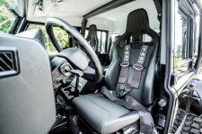 Y es que, por ejemplo, reemplazaron las ruedas originales por otros neumáticos de 37 pulgadas de diámetro, elevaron la carrocería con un kit de suspensiones específico con amortiguadores Blistein especialmente puestos a punto por Bowler o potenciaron el motor turbodiésel original, de forma que ahora entrega 185 CV de potencia y 500 Nm de par. Y como prueba de que este vehículo no es un mero producto promocional, la completa doble jaula de seguridad, que protege el exterior de la carrocería y el habitáculo ante posibles vuelcos.
