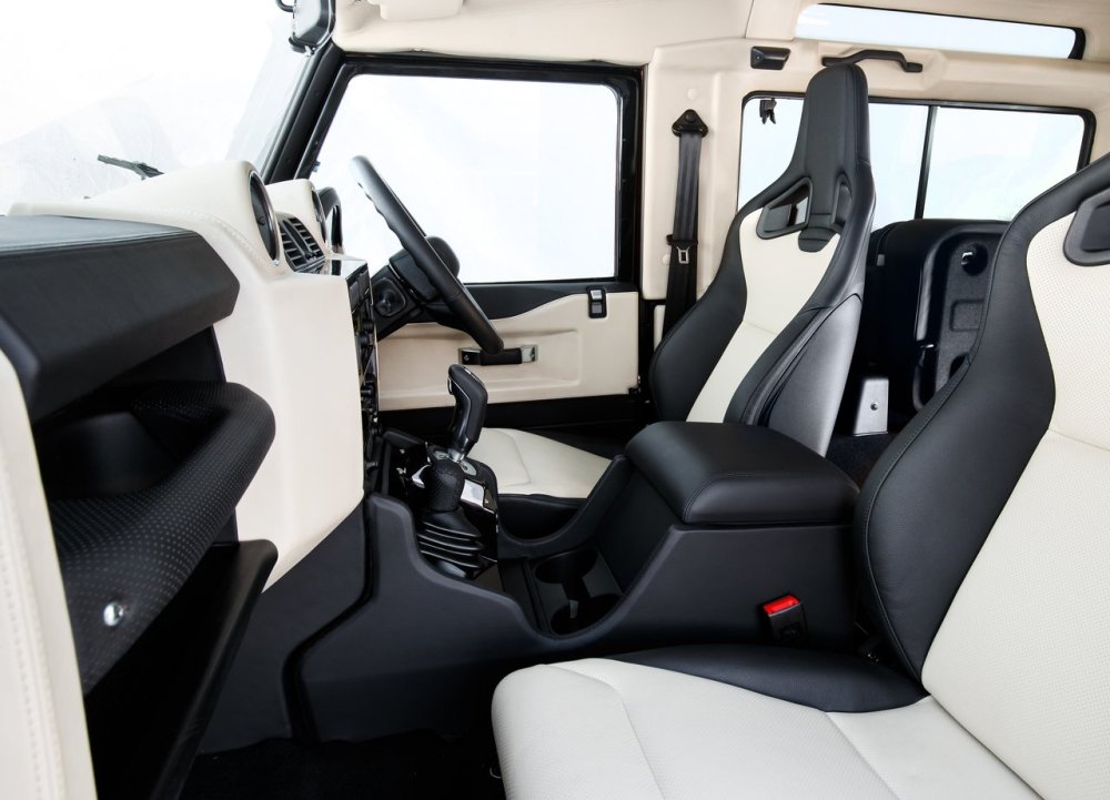 A nivel estético, el Land Rover Defender Works V8 estará disponible con ocho colores exteriores con opción de techo en contraste negro Santorini, arcos para los pasos de rueda y una nueva parrilla delantera. Tiradores de aluminio, tapón de llenado de combustible, denominación Defender en el capó y toda la iluminación, tanto exterior como interior en LED. El habitáculo, por su parte, incluye asientos deportivos Recaro con cuero Windsor en el salpicadero, paneles de las puertas y techo. Por último, una versión clásica del sistema de infoentretenimiento de Land Rover también está disponible.