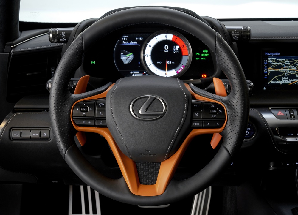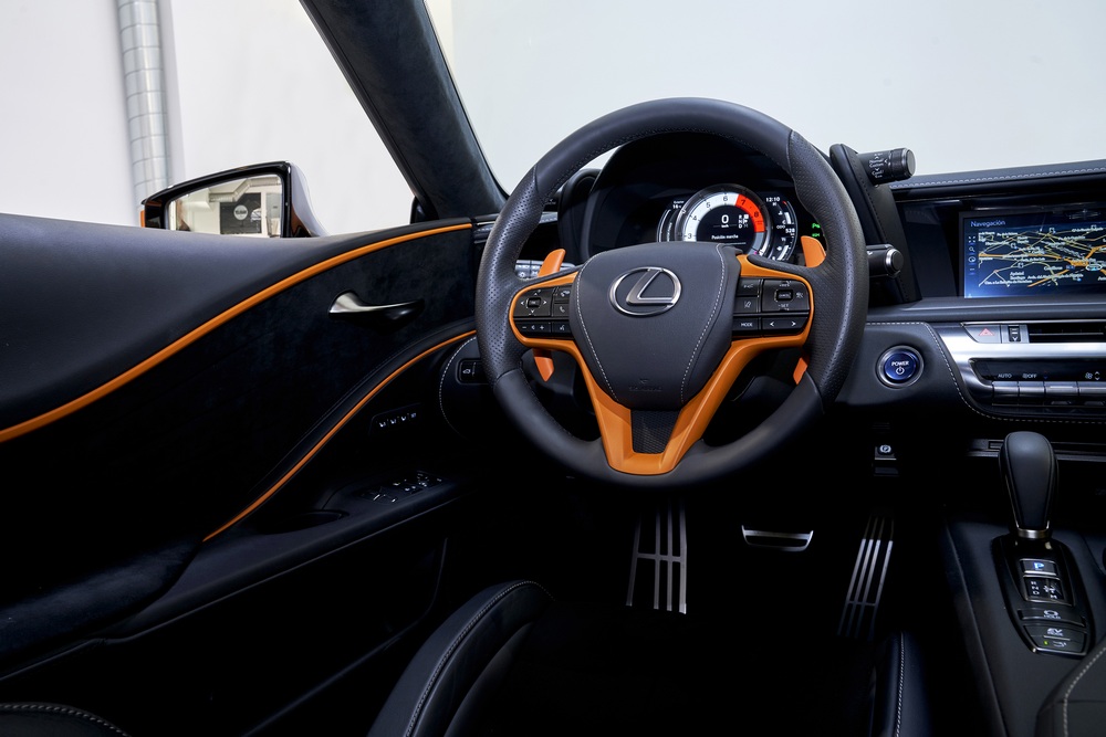 Ese color naranja se extiende también por el habitáculo del LC 500h ‘Matte Prototype’, donde los diseñadores de Lexus lo han usado como elemento de contraste en zonas como el panel de instrumentos, el volante o los guarnecidos de las puertas. En cuanto al sistema de propulsión, este se ha mantenido sin cambios con respecto a la versión de producción que ya conocíamos.