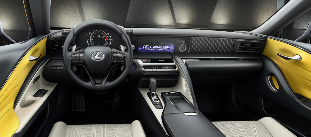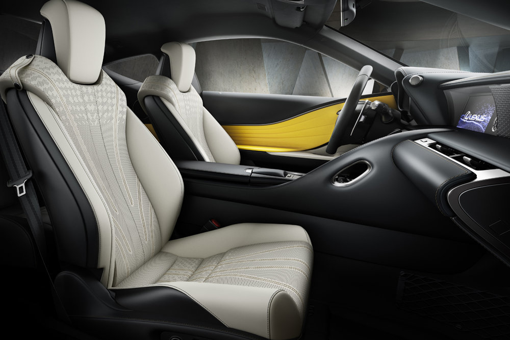 Porque al Amarillo Nápoles que viste su carrocería hay que añadir los detalles únicos que luce el interior del Lexus LC Yellow Edition. Ya que, por ejemplo, los paneles de las puertas están realizados ahora con inserciones de alcántara de color amarillo cálido. El mismo tono utilizado en las costuras que lucen los asientos de cuero semianilina en blanco, el panel de instrumentos, el volante o el reposabrazos de la consola central.