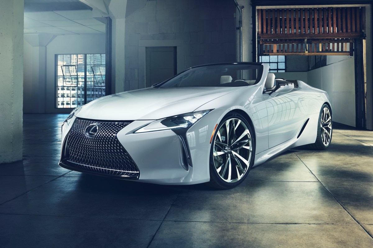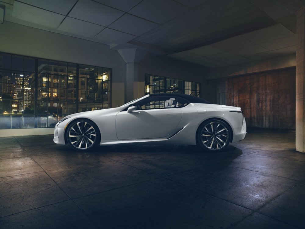 Según Lexus, “las fuertes líneas exteriores del LC Convertible Concept refuerzan su pedigrí de rendimiento”. Presenta unos voladizos cortes, llantas de 22 pulgadas y una postura ancha como principales atributos exteriores. En el interior se conservan todos los atributos del coupé, como los elaborados asientos en configuración 2+2, el volante, el cuadro de instrumentos, la enorme pantalla del sistema multimedia y la consola central en cascada, todo ello envuelto en materiales y cueros de primera calidad.