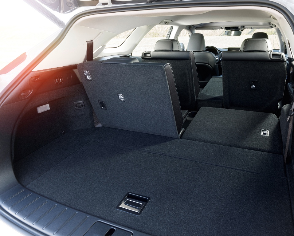 Para que ese incremento de tamaño en el voladizo trasero no suponga romper con la homogeneidad del diseño, Lexus ha inclinado más aún la luneta trasera que en los modelos de dos filas de asientos. Por otro lado, la versión con capacidad para siete personas utiliza un asiento con separación de 40/20/40 en la segunda fila. El acceso a la tercera fila se facilita accionando una palanca que pliega la segunda fila hacia delante.