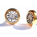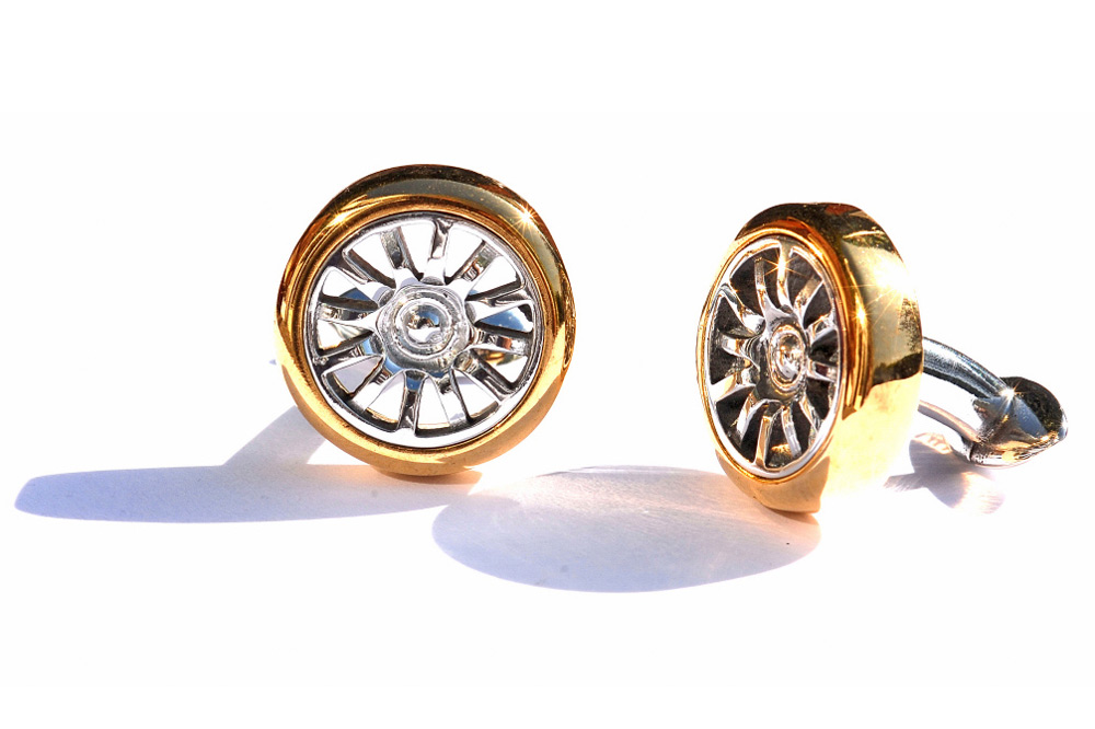 Estos gemelos que simulan las llantas del Bugatti Veyron están hechos a mano, miden 23 mm de longitud, están acompañados de un certificado de autenticidad y tienen un precio de 295 libras, unos 340 euros. Para conseguirlos es necesario ponerse en contacto directamente con TMB Art Metal.