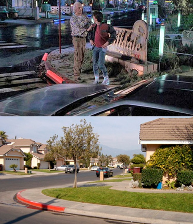 En la localidad de El Monte, en California, se encuentra la urbanización que sirvió de escenario para HillDale, el futuro hogar de la familia McFly en 2015, y que vemos en 'Regreso al Futuro II' cuando Doc y Marty viajan para recoger a Jennifer (enlace en Google Street View).