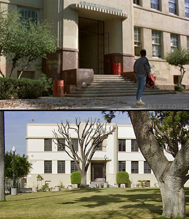 En la localidad de Whittier, California, se encuentra el instituto que sirvió como localización para el centro educativo de la película. En dicho edificio se rodaron los exteriores de la escuela y los interiores para las escenas de la cafetería o de los pasillos, ambientados en 1985 y 1955 (enlace en Google Street View).