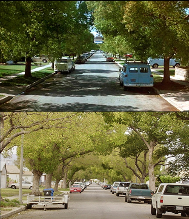 Hoy, 21 de octubre de 2015, es una fecha muy sonada para los fans de la saga 'Regreso al futuro', ya que es el día en el que Doc y Marty viajan en el tiempo hasta un hipotético futuro que dista mucho de lo que se apreciaba en la película. Por ello, queremos comparar las localizaciones de la película con el momento actual, para apreciar el paso del tiempo. Debemos señalar que todas las escenas se rodaron en California y en los decorados de Universal Studios, aunque estos últimos fue destruidos por un incendio en 2008.