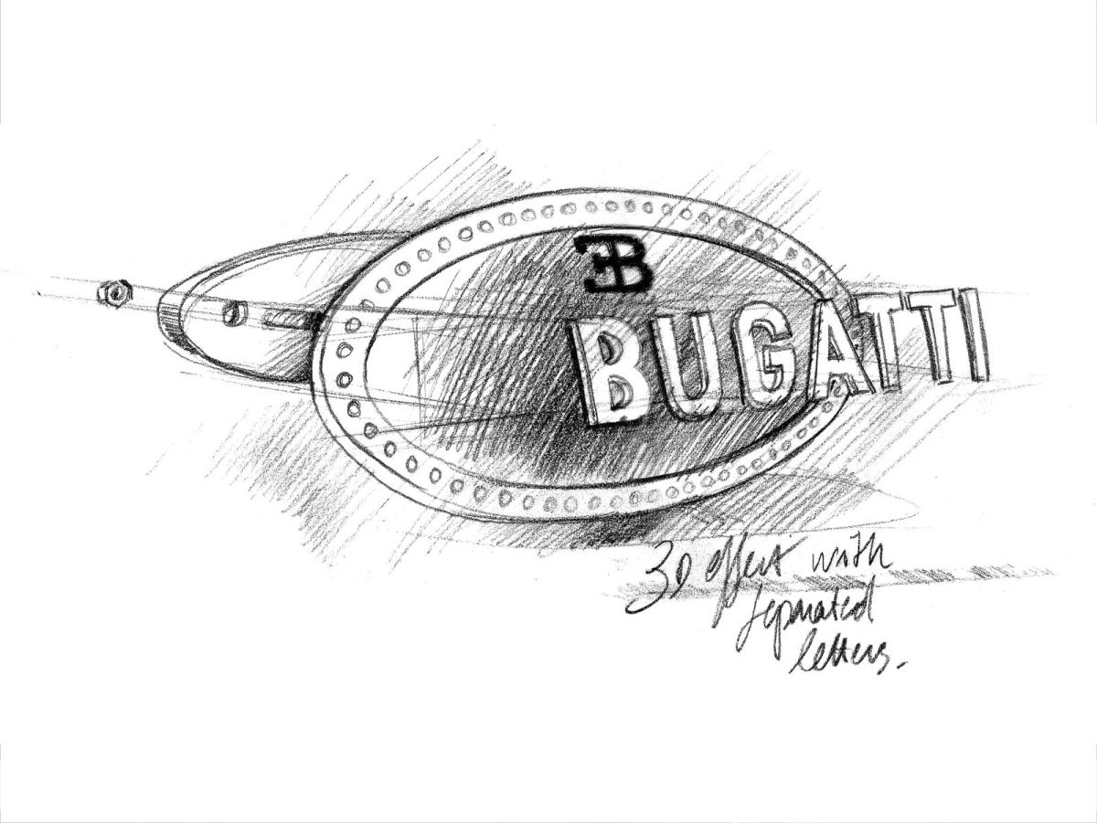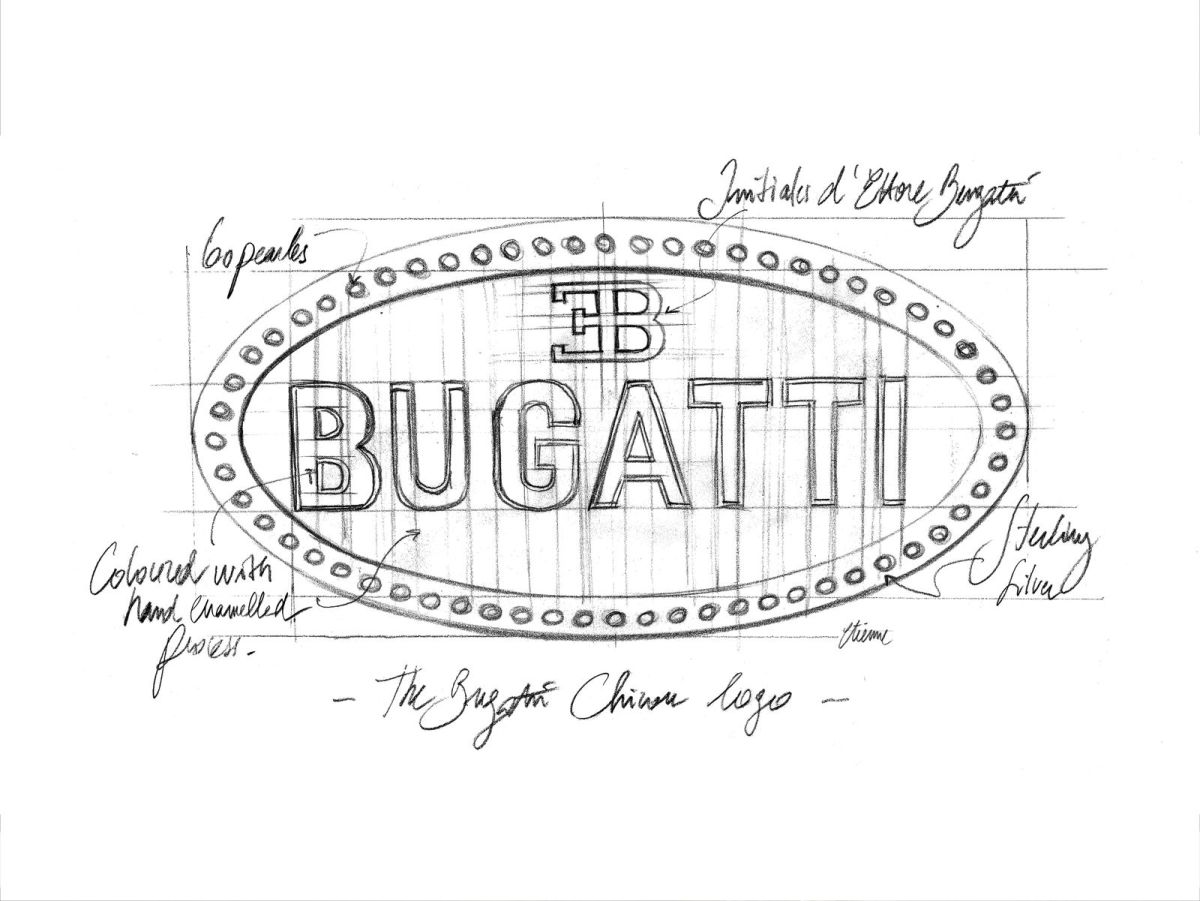 El diseño del logotipo de Bugatti no era completamente nuevo, ya que Ettore había creado un símbolo similar para Deutz, una empresa en la que había trabajado anteriormente en Colonia, Alemania. Cuando decidió crear un propio vehículo, Bugatti eligió intencionadamente este diseño, creado al cortar un cilindro con un diámetro de 45 mm en un ángulo de 30 grados y con una forma completamente plana, algo que distaba mucho de los elaborados logotipos ornamentales de la época.