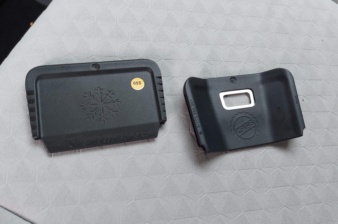 Tiene unas divisiones de plástico que se pueden mover para variar el espacio disponible, aunque tienen más funciones. Porque una de estas piezas también puede servir para rascar el hielo del parabrisas, mientras que la otra puede hacer las veces de abrebotellas.