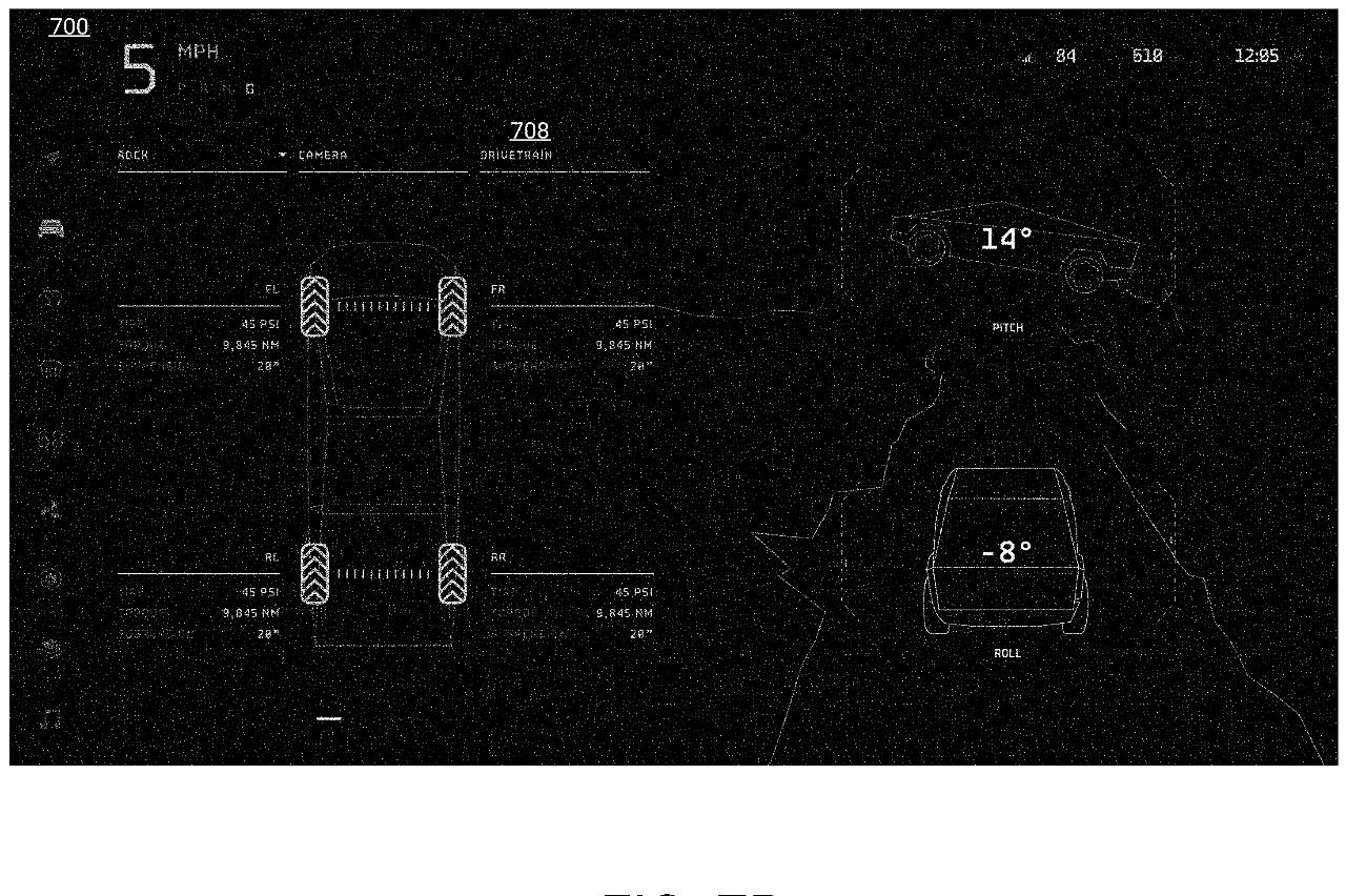 Fijándonos, además, con un poco más de atención, vemos que en todas aparecen tres números en la parte superior derecha. Se trata de la temperatura (en grados fahrenheit), la hora y, en medio, la autonomía. En muchas de imágenes, esta última aparece con 610 millas, es decir, 982 km. Por lo que se supone que esa será su autonomía máxima. Lo que se había anunciado hasta ahora era simplemente que la versión 'trimotor' contaría más de 800 km, pero parece que, gracias a esta solicitud de patente, ya sabemos el número exacto.