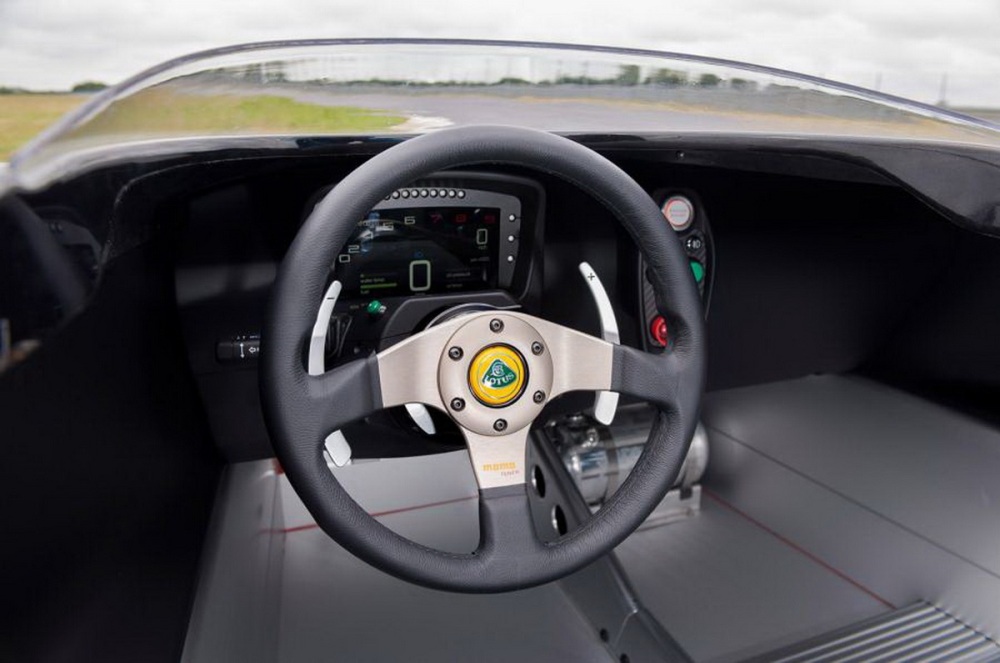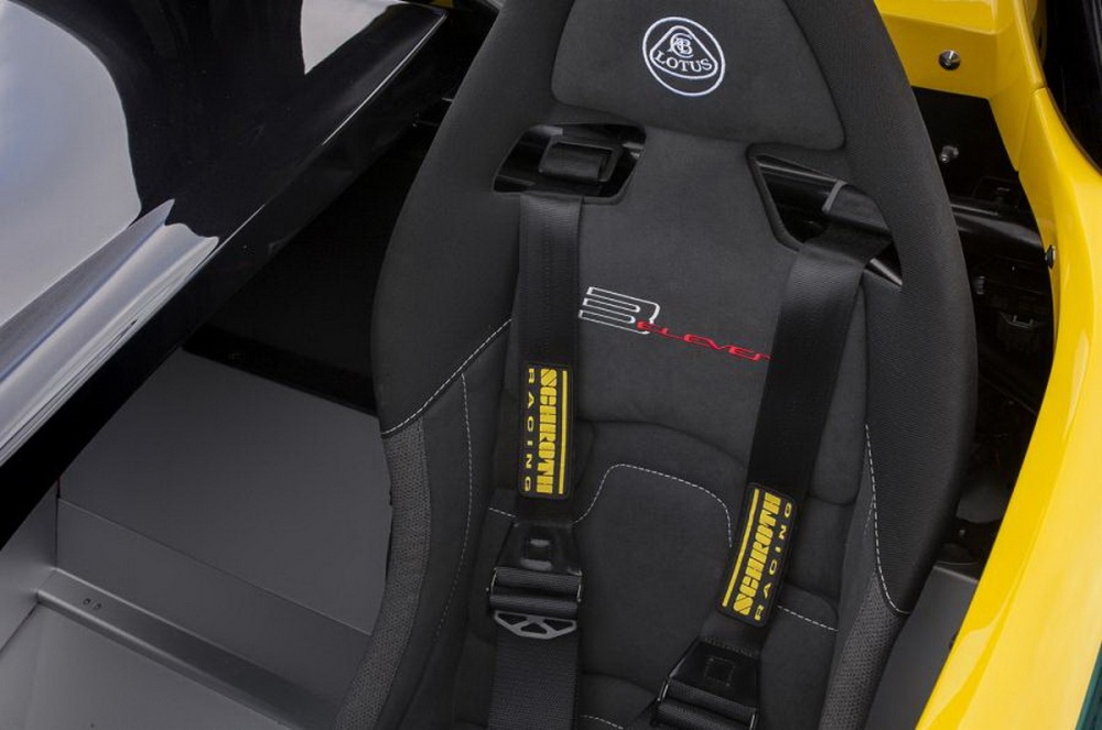 En el interior, el minimalismo es la base principal de su diseño. Lotus ofrece una pareja de asientos deportivos, siendo el del pasajero extraíble para mejorar la aerodinámica en general. Una pantalla TFT a color proporciona al conductor toda la información necesaria, siendo el volante extraíble también, ya que es una norma básica en el los modelos de pista homologados para calle.