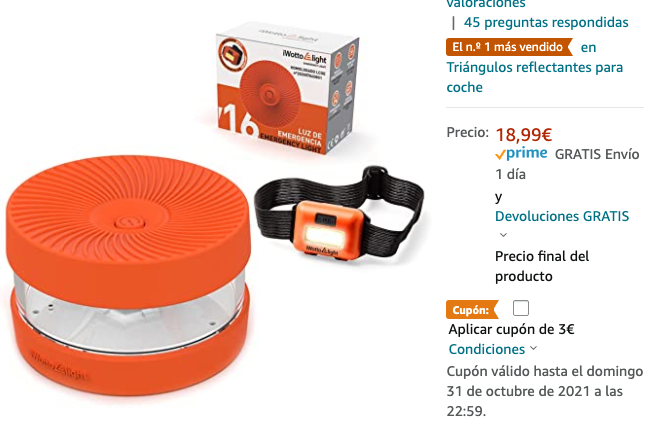 Cada vez apostamos más por las luces v16 que por los triángulos. Son mucho más seguras, ya que no es necesario bajar del coche para ponerlas y eso es una gran ventaja, así podemos evitar que nos atropellen porque no nos han visto bien. Por eso si no has conseguido una aún, te recomendamos que lo hagas porque si llevas esto no es necesario salir del coche para nada en caso de emergencia. Si estas pensando en hacerte con una, esta de fabricación española es bastante buena y este fin de semana está de oferta por 16 euros en Amazon, para ello tenemos que aplicar el cupón que viene.