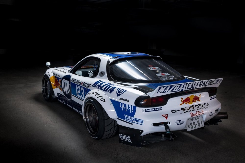 Ya sea el frontal, las aletas y el parachoques, así como el capó, procedentes del RX-3, como los laterales y la zaga heredados del RX-7 FD original. Una decoración personalizada, un alerón integrado sobre el grupo óptico trasero, un difusor de competición, un pequeño spoiler sobre el techo y los espejos retrovisores montados sobre las aletas se complementan con unas llantas personalizadas firmadas por Rotiform.
