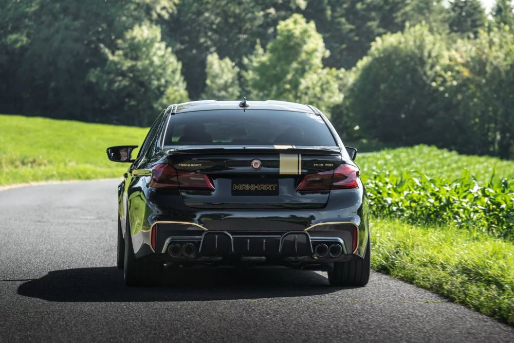 Manhart también ha incorporado a la fórmula un sistema de escape de acero inoxidable y, por un coste adicional, los clientes pueden recibir salidas de escape de fibra de carbono. Otras mejoras que incluye es una suspensión compuesta por muelles coilovers KW que acercan al M5 otros 20 mm más al suelo, dejando un espacio lo suficientemente amplio para que quepan en sus pasos de rueda unas llantas Concave One de 21 pulgadas de aluminio terminadas en Silk-Matte Black.
