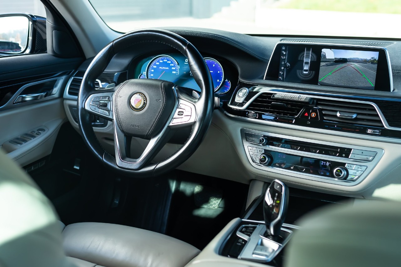 Por su parte, el interior mantiene casi en su totalidad el mismo aspecto del Serie 7 original, con una tapicería de cuero blanca, pero con un grupo de botones Alpina y la insignia de Manhrat en el volante. No obstante, el preparador ofrece numerosas opciones de personalización bajo petición del cliente, incluido un techo iluminado a modo de estrellas.