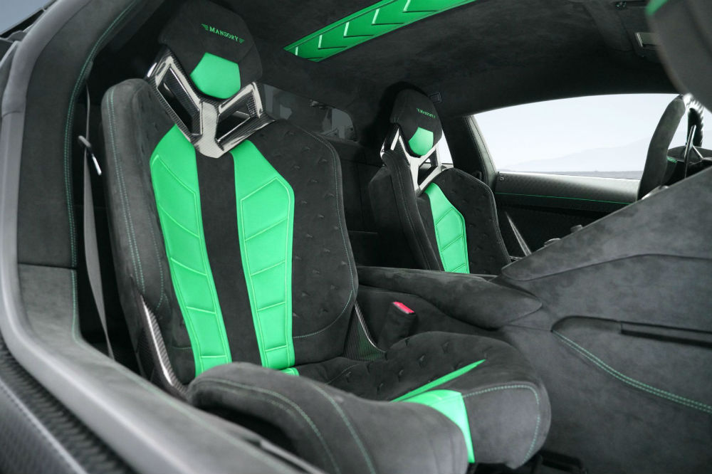 Como es habitual, Mansory también ha “metido mano” al apartado mecánico, instalando un sistema de escape cuádruple para dar salida a los caballos extra que le ha otorgado al motor 6.5 V12 atmosférico del Lamborghini, que pasa de los 770 a los 810 CV, mientras que el par máximo disponible aumenta de los 720 a los 780 Nm. Gracias a ello es capaz de acelerar de 0 a 100 km/h en 2,6 segundos (2 décimas más rápido que el modelo de serie) y de alcanzar una velocidad máxima de 355 km/h (5 km/h extra).