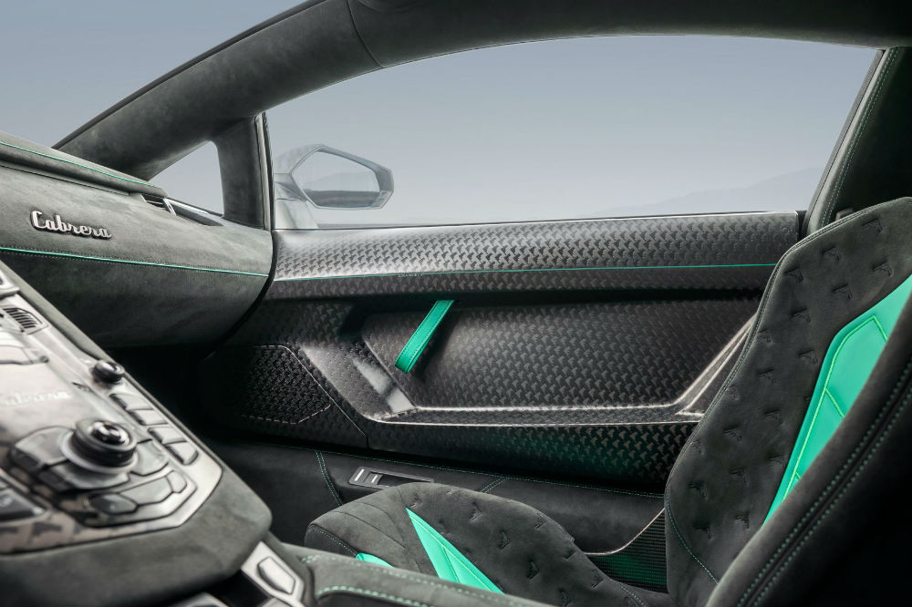 En el habitáculo se repite la presencia del mismo tono verdoso, prácticamente todo está forrado en Alcantara y abunda la fibra de carbono dando forma a los insertos y molduras.