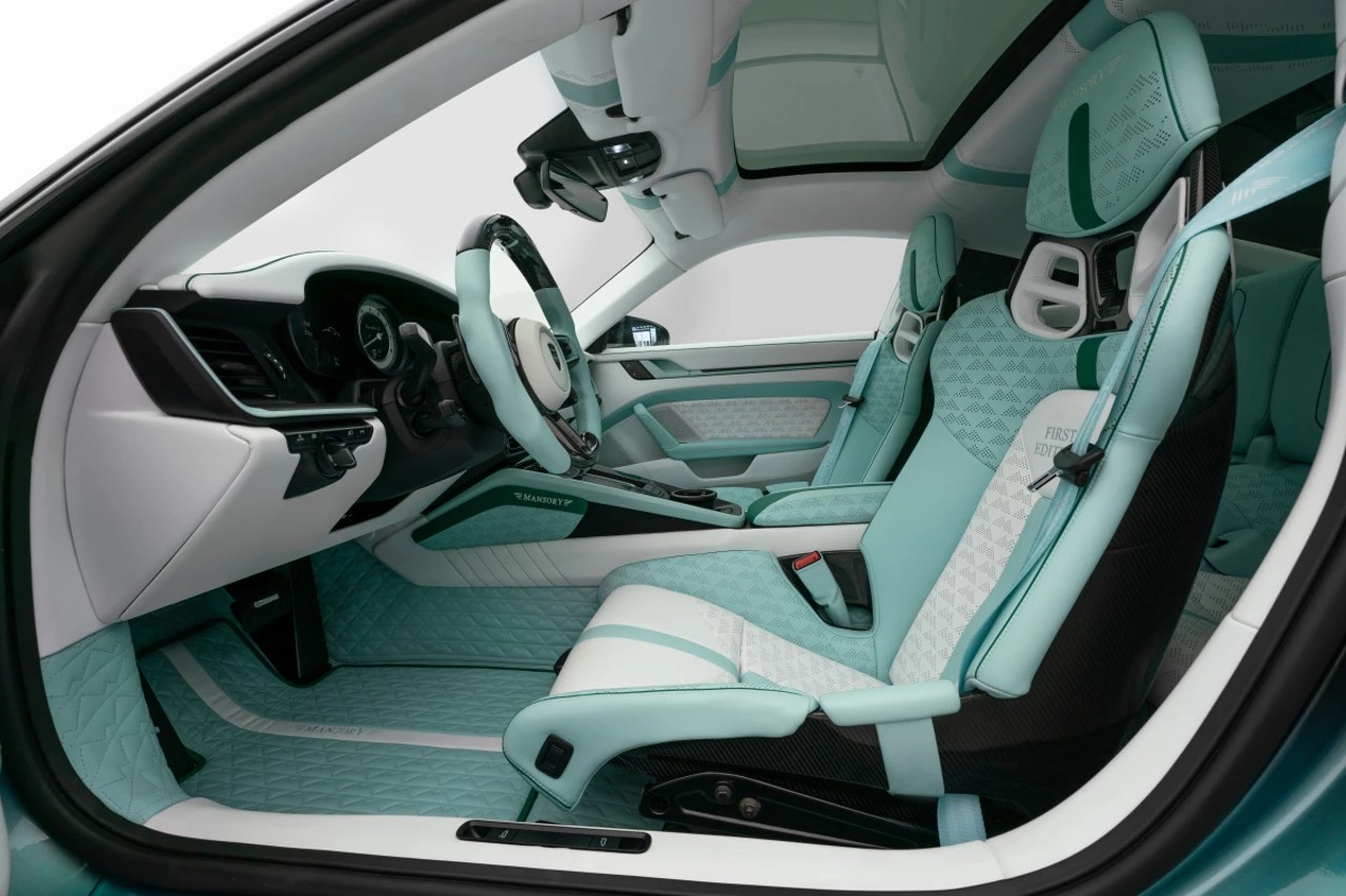 Otros detalles estéticos que podemos destacar de este 9111 Turbo S de Mansory es el juego de llantas forjadas de 21 pulgadas delante y 22 detrás, con diseño de diez radios de una sola pieza, a juego con la carrocería bitono, calzadas con neumáticos de alto rendimiento (255/35 ZR21 delante y 335/25 ZR22 detrás). Las mejoras del chasis se limitan a "componentes de suspensión Mansory de nuevo desarrollo", según el fabricante, mientras que los frenos se dejan de serie con pinzas personalizables.