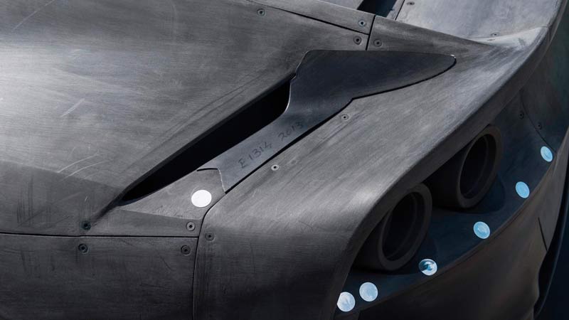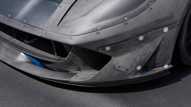 La estudiada aerodinámica del último V12, con innovaciones tales como el frontal multifuncional o el inédito by-pass aerodinámico en los guardabarros traseros, es el resultado obtenido de esta maqueta realizada en fibra de carbono y otros “materiales prototipo” de los que se desconoce el nombre. Como era de esperar, no incluye el motor V12 de 6.5 litros en posición delantera con 800 CV a 8.500 rpm y un par motor de 718 Nm a 7.000 rpm. Tampoco el nuevo color ‘Rosso Setenta anni’. Lo que sí posee son algunos elementos móviles para estudiar las propiedades aerodinámicas del que iba a ser el futuro modelo.