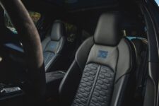 La personalización es aún más exclusiva en el interior. Luce unas inserciones iluminadas en los umbrales, con las leyendas ‘AUDI SPORT X MM 93’ y ‘AUDI SPORT X AM 73’, así como en los respaldos de los asientos, que en vez del logo RS bordado llevan el número de cada piloto, en color rojo para el coche de Marc y en azul para el de Álex. La asociación de colores con sus respectivos equipos se repite en las costuras de contraste en la tapicería y en los cinturones de seguridad, también personalizados.