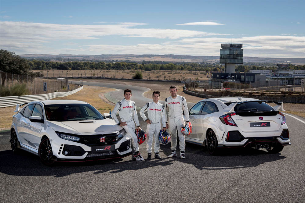 Tres de los mejores pilotos sobre dos ruedas han recibido sus coches para uso diario. Marc Márquez, Dani Pedrosa y Toni Bou disfrutarán de sendos Honda Civic Type R para quemar adrenalina fuera de los circuitos. Y es que las tres estrellas han probado el nuevo deportivo en el Circuito del Jarama. 3.850 metros de trazado madrileño y 12 curvas para uso y disfrute de la dupla de MotoGP y del 22 veces ganador del Mundial de Trial.
