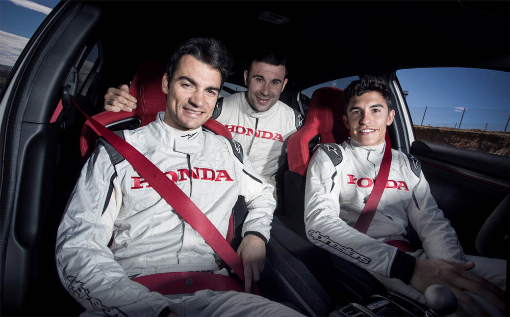 Marc Márquez, Dani Pedrosa y Toni Bou prueban el Civic Type R en el Jarama