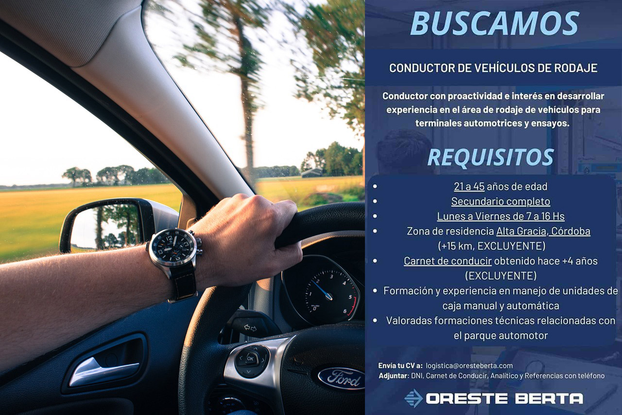 Oreste Berta presentó recientemente una oferta de trabajo en la que buscaban conductores de pruebas para que desempeñen trabajos en el “área de rodaje de vehículos para terminales automotrices y ensayos”. El puesto estaba disponible para personas de entre 21 y 45 años, con la educación secundaria completada, carné de conducir con al menos cuatro años de antigüedad y que residieran en el área cercana a la “Fortaleza de Alta Gracia”.