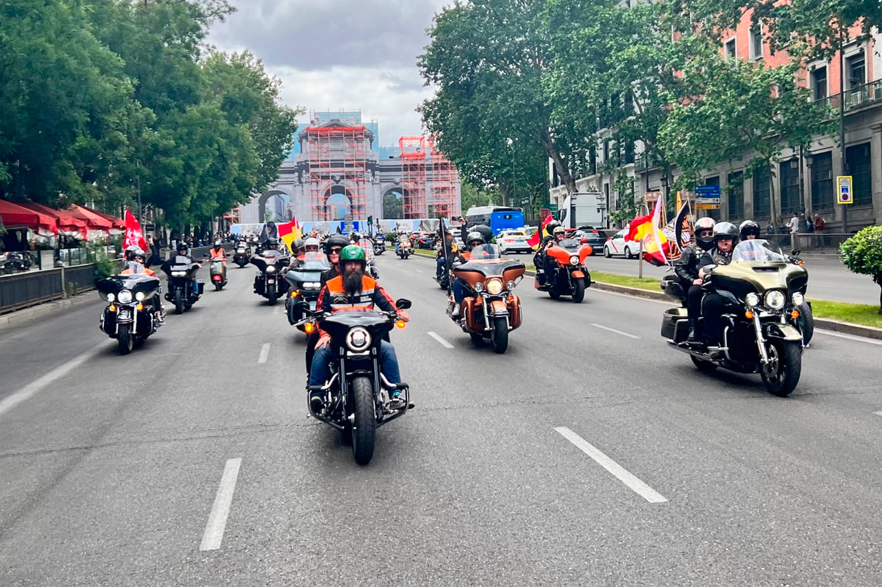 Dos décadas merecen una fiesta de altura, y por eso más de 1.000 motocicletas de la marca americana se dieron cita en la capital para recorrer algunas de las calles y zonas más emblemáticas como la Plaza de Cibeles, la Puerta de Alcalá o el Paseo de la Castellana.