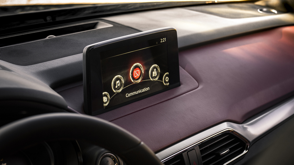 Comparado con su predecesor, la longitud total del Mazda CX-9 2016 ha disminuido ligeramente, pero sin embargo, la distancia entre ejes ha aumentado en 55 mm, lo que le permite ofrecer espacio adicional para las piernas de los pasajeros de las filas traseras así como un mejor acceso al habitáculo, tal y como asegura la marca. Y ya que hablamos del interior, decir que incorpora el sistema multimedia Mazda Connect, disponible con pantalla de 7 u 8 pulgadas. Además, el fabricante japonés asegura que ha mejorado el confort gracias al empleo de ventanillas de mayor grosor y de 24 kilogramos adicionales de material aislante.