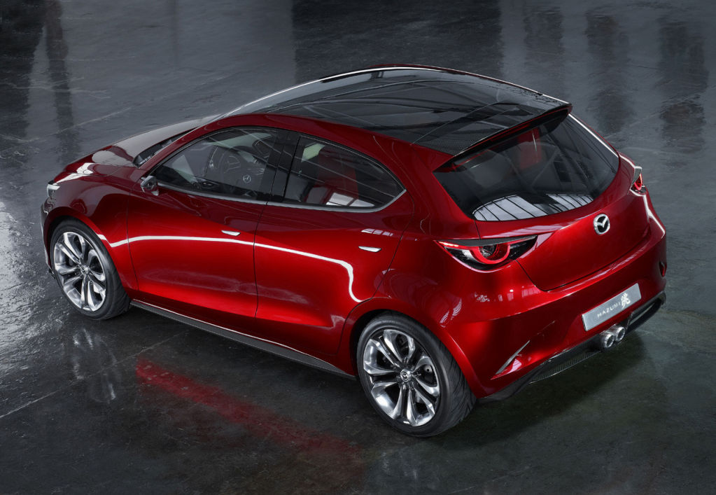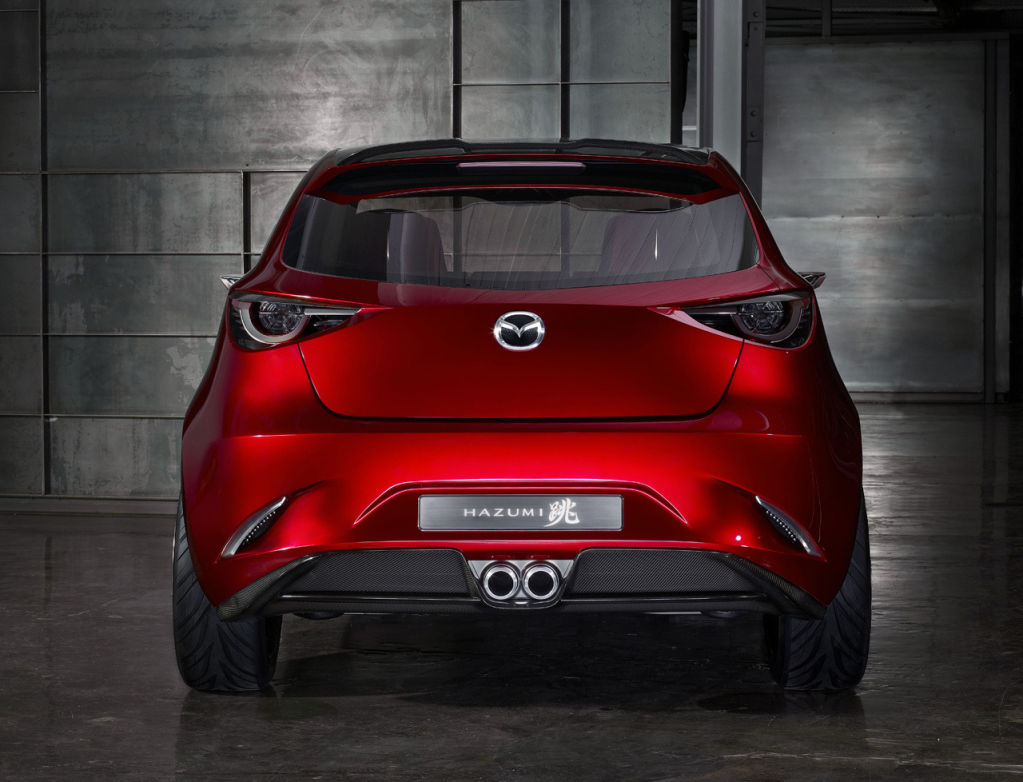 El Hazumi Concept, que tiene una longitud de 4,07 m, una anchura de 1,73 m y una altura de 1,45 m, equipa el nuevo motor diésel SKYACTIV-D de 1,5 litros que, acoplado a un cambio automático de seis velocidades, presume de emitir menos de 90 g/km –culpa de ello la tienen el sistema de corte de ralentí i-stop y el de freno regenerativo i-ELOOP-.