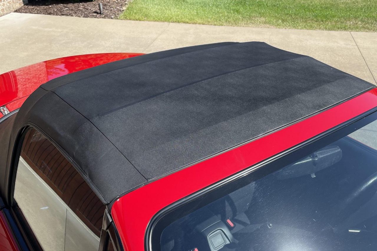 Decorado en el característico color rojo, incluso tiene la pegatina con el nombre de Mazda en el paragolpes delantero, además de que mantiene las llantas de acero originales y la capota de lona está perfectamente conservada. Lo mismo ocurre con el habitáculo, que no presenta prácticamente desgaste.