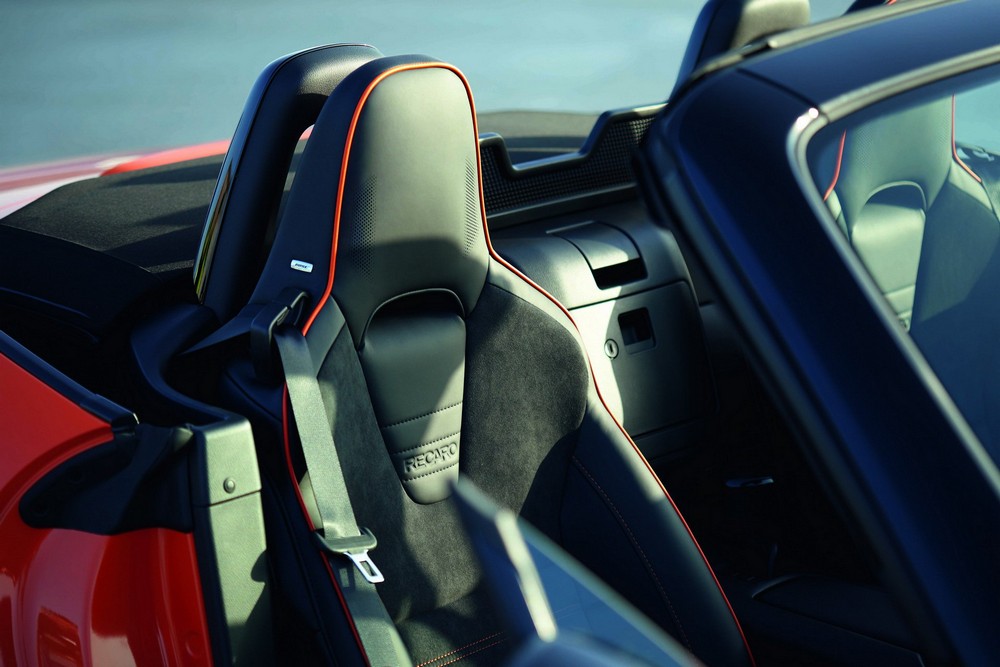 No faltan los pertinentes logotipos identificativos con la numeración correspondiente de cada una de las 3.000 unidades que se van a fabricar. En cuanto al interior, destaca la presencia de multitud de detalles en el mismo color ‘Racing Orange’ de la carrocería, como las molduras decorativas, las salidas de aireación o los ribetes de los asientos deportivos Recaro.